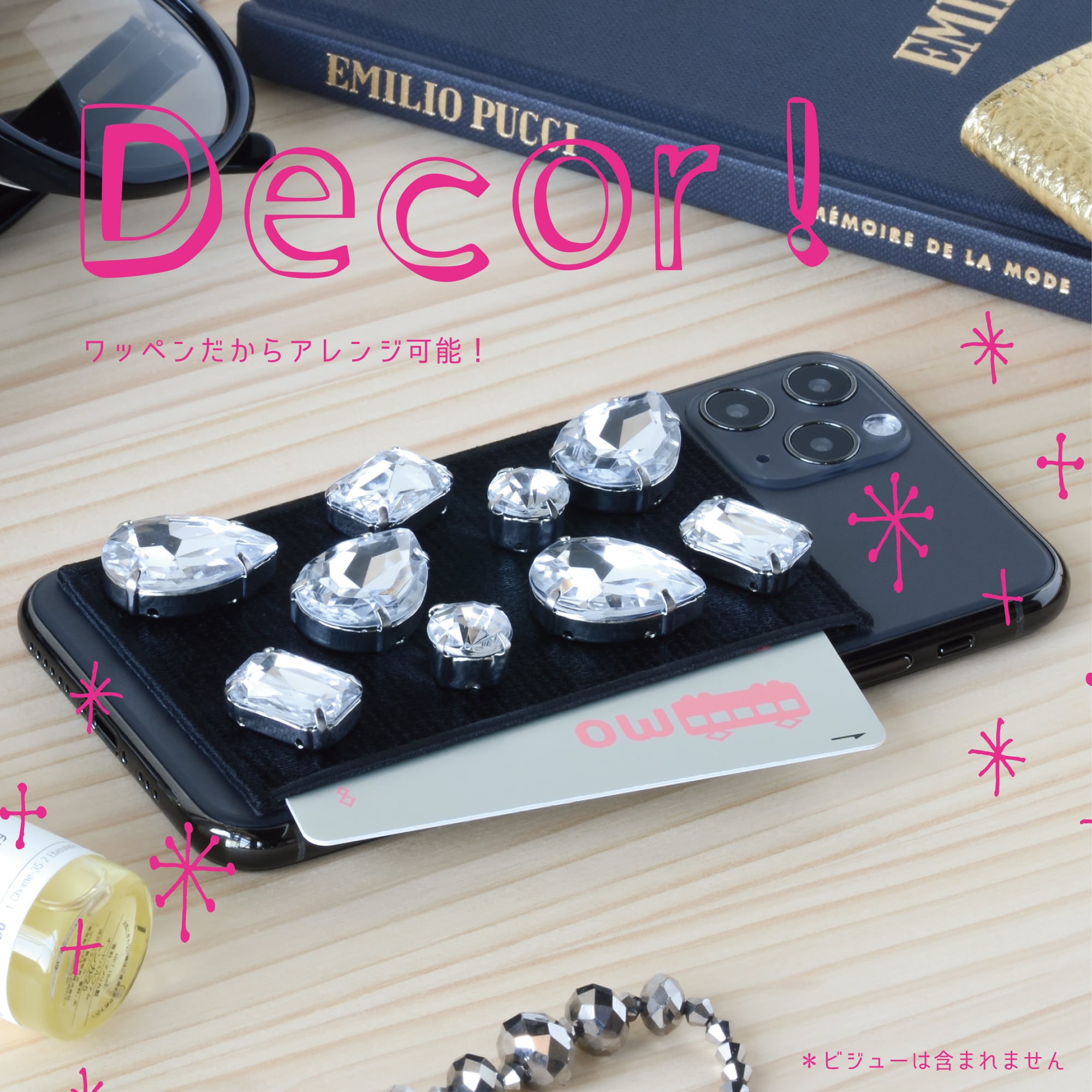 ストレージワッペンは、スマホにピタッと貼り付けられるポケット付きのワッペンです。交通系I Cカードなどをポケットに収納すれば、改札やコンビ ニなどでカードを出さずに使用できます。